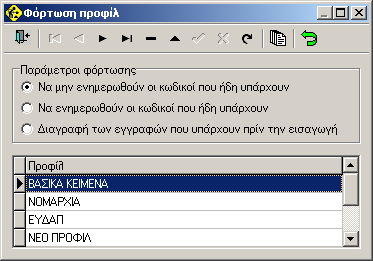 Αν θέλουμε να φορτώσουμε μια δέσμη-προφίλ σε κάποιο έργο τότε πατάμε το πλήκτρο «Φόρτωση προφίλ»
