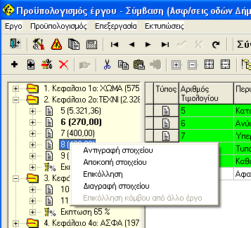 Οι ιδιες εργασίες μπορούν να γίνου Με δεξί κλικ στο αριστερό παράθυρο οπου έχουμε τοπικο popup μενού με βοηθητικές εργασίες σχετικά με το στοιχειά- κόμβους του έργου