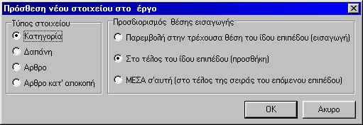 Η εισαγωγή νέου στοιχείου γίνεται με το πλήκτρο [+]