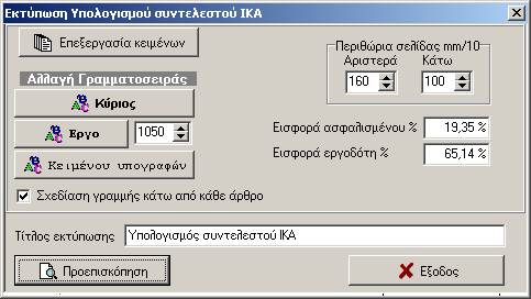 3. Εκτύπωση Υπολογισμού συντελεστού Ι.Κ.Α.