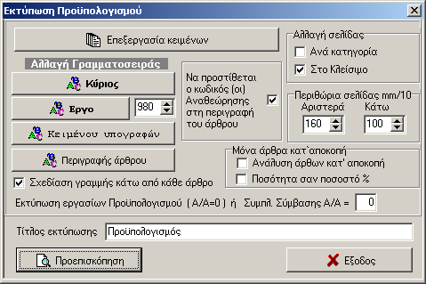 Αν υπάρχουν Αρθρα κατ' αποκοπή και θέλουμε να τυπώσουμε της αναλύσεις τους επιλέγουμε σχετικά
