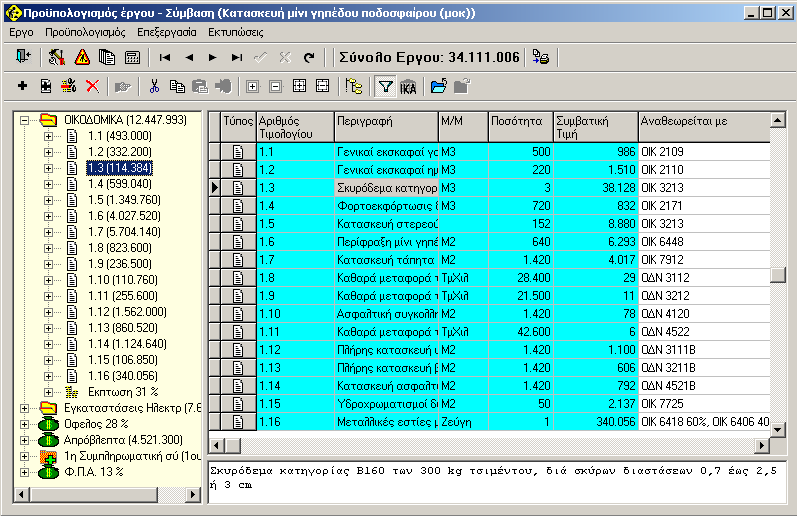 Οι λεπτομέρειες που εμφανίζονται δεξιά αφορούν το στοιχείο που έχουμε επιλέξει αριστερά δηλαδή στο παραπάνω παράδειγμα δεξιά βλέπουμε τα στοιχεία της κατηγορίας "ΟΙΚΟΔΟΜΙΚΑ"