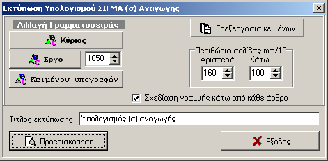 2. Εκτύπωση Υπολογισμού (σ) αναγωγής