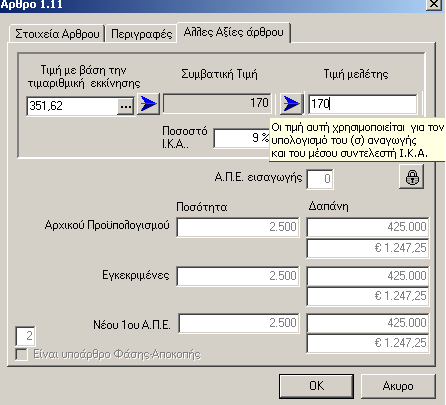 Την τιμή με βάση το τρίμηνο δημοπράτησης . Αν υπάρχει εγκατεστημένο το Ergowin τότε πατώντας στις […] η τιμή υπολογίζεται αυτόματα