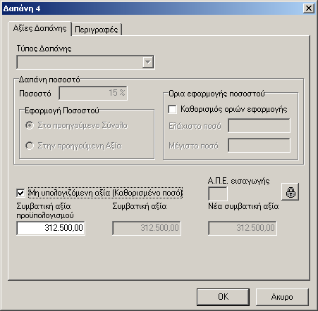 Αν θέλουμε να βάλουμε ένα συγκεκριμένο ποσό επιλέγουμε το «Μη υπολογιζόμενη αξία (καθορισμένο ΠΟΣΟ)» και από κάτω ορίζουμε την σχετική δαπάνη.