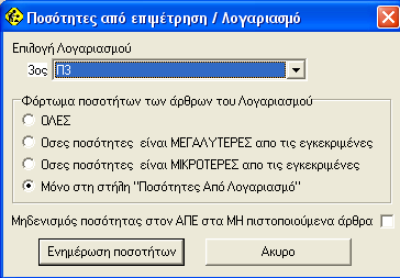 Εμφανίζεται το σχετικό παράθυρο στο οποίο αφού επιλέξουμε την επιμέτρηση-Λογαριασμό που θέλουμε