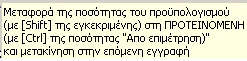 Αν θέλουμε να μεταφέρουμε τις ποσότητες αυτές με ελεγχόμενο τρόπο στις προτεινόμενες ποσότητες πατάμε το πλήκτρο