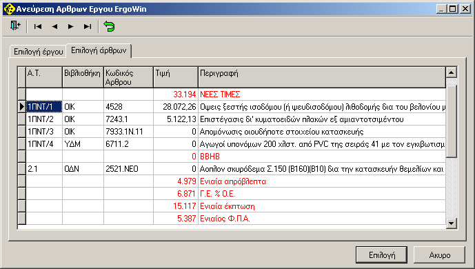 Φόρτωμα-Ενημέρωση "Νέων Τιμών" από το "ErgoWin"