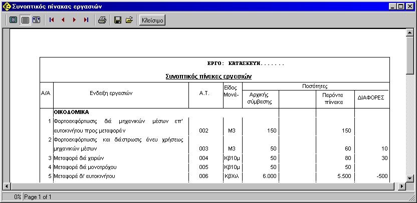 3. Με την πέμπτη επιλογή "Εκτύπωση συνοπτικού πίνακα ποσοτήτων" έχουμε το παρακάτω παράθυρο