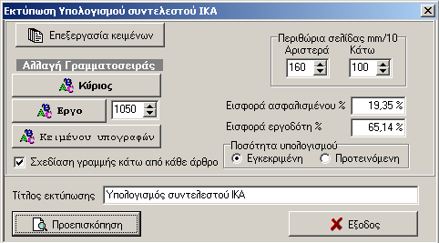 4. Εκτύπωση Υπολογισμού συντελεστού Ι.Κ.Α.