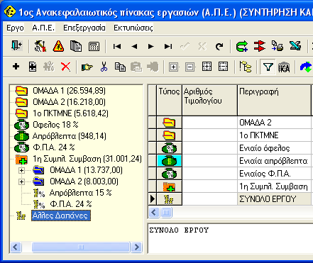 Την κατηγορία αυτήν την τοποθετούμε (με σύρσιμο και απόθεση) πάνω στο Φ.Π.Α. που θεωρείται ενιαίο για όλο το έργο.
