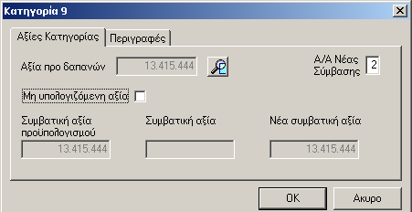 Ανοίγουμε τα στοιχεία της κατηγορίας αυτής και ορίζουμε πάνω αριστερά τον αριθμό της Συμπλ. σύμβασης