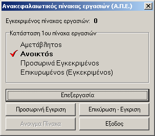 Αν θέλουμε να είναι ενεργός (πραγματικός) ο ΑΠΕ πατάμε το σχετικό πλήκτρο (Ενεργός Πινάκας)