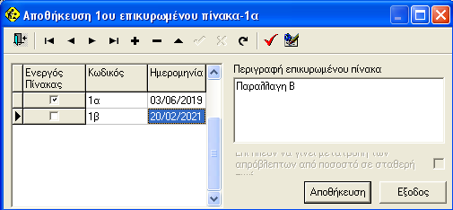 Για να Αποθηκεύσουμε σαν εναλλακτική παραλλαγή πριν πατήσουμε το [Αποθήκευση] Πατάμε το [+] και δημιουργούμε νέα εγγραφή και βάζουμε δικό μας κωδικό (π.χ. 1β) και περιγραφή.