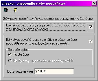 Η επιλογή στο κάτω μέρος ενεργοποιεί τον διάλογο "Ελεγχος υπερσυμβατικών ποσοτήτων" που ενεργοποιείται επίσης από το παραθυράκι με τα εργαλεία