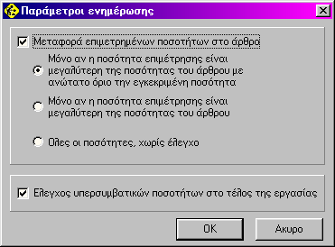 Στο παράθυρο αυτό επιλέγουμε ανάλογα τον τρόπο που θα γίνει η ενημέρωση των ποσοτήτων στον λογαριασμό.