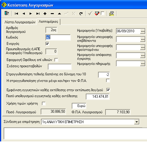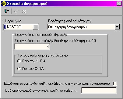 Καθορίζουμε επίσης τις διάφορες παραμέτρους του λογαριασμού όπως τον τρόπο στρογγυλοποίησης του τελικού ποσού του λογαριασμού , ημερομηνίες κλπ.