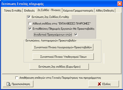 3. Η Τρίτη σελίδα επιλογών αφορά τη 2η σελίδα της εντολής πληρωμής δηλαδή τη σελίδα με τον Αναλυτικό πίνακα Εγκρίσεων και πληρωμών.