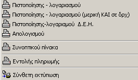 εμφανίζεται το μενού των εκτυπώσεων του λογαριασμού