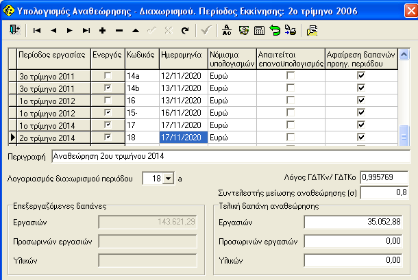 Ο λόγος ΓΔΤΚv/ΓΔΤΚο Αρθρο 70. Ν 4313/2014 παράγραφος 2 <http://www.ergotech.gr/N4313-14_70_2.pdf> υπολογίζεται αυτόματα αλλά μπορούμε να τον αλλάξουμε. Και να πατήσουμε επανυπολογισμό.