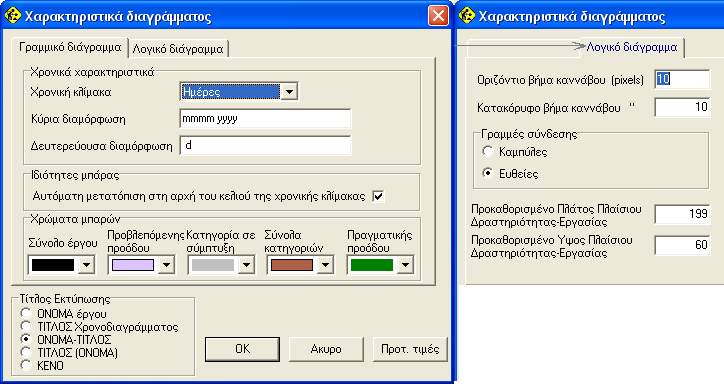 "χαρακτηριστικά διαγράμματος" οπότε εμφανίζεται το παρακάτω παράθυρο