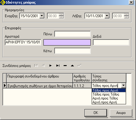 Ακόμα (εφόσον έχουμε ορίσει γραμμή σύνδεσης) να αλλάξουμε τον τύπο σύνδεσης