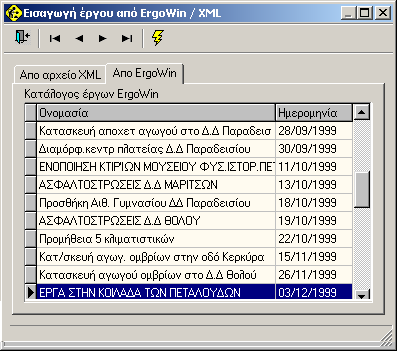 Εισαγωγή έργου από αποθηκευμένο αρχείο τύπου XML ή από έργο του ErgoWin32