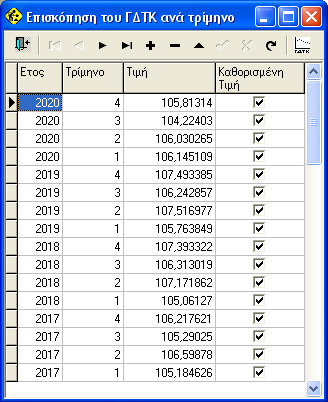 Στο παράθυρο εμφανίζονται όλα τα τρίμηνα από το Α' του 2010 και ο σχετικός μέσος συντελεστής του