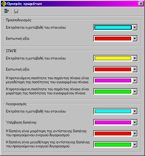 Στο παράθυρο αυτό καθορίζουμε τα επιθυμητά χρώματα σε διάφορα σημεία του προγράμματος